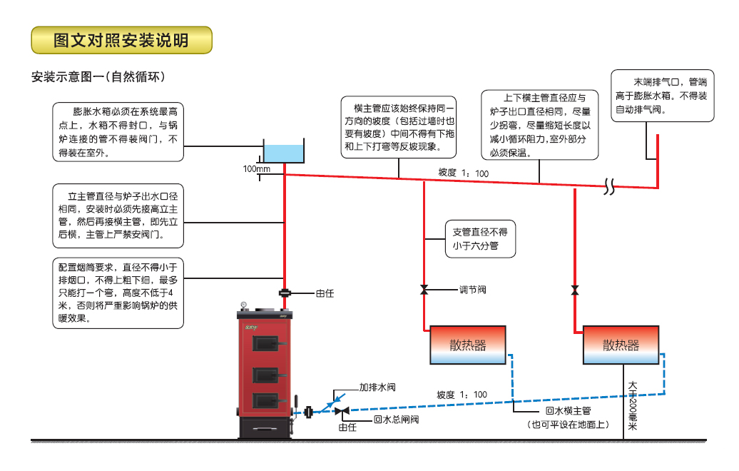 系統(tǒng)高處高度不得超過7米,否則鍋爐會發(fā)臌。